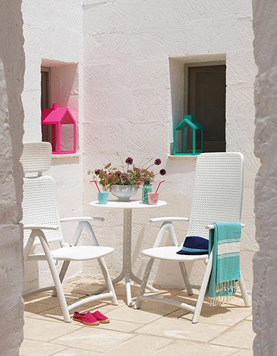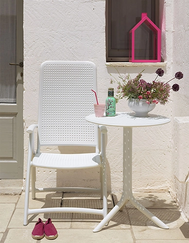 La mesa Step a diferencia de la version Spritz, tiene superficie con perforaciones, ideal para climas lluviosos. Base trípode con estructura interna metálica para darle mayor peso y estabilidad. Fácil de armar y desarmar. Puedes utilizarla en su mayor altura como mesa de comedor o en su versión más baja como mesa auxiliar para acompañar poltronas de descanso, tumbonas y decoración.